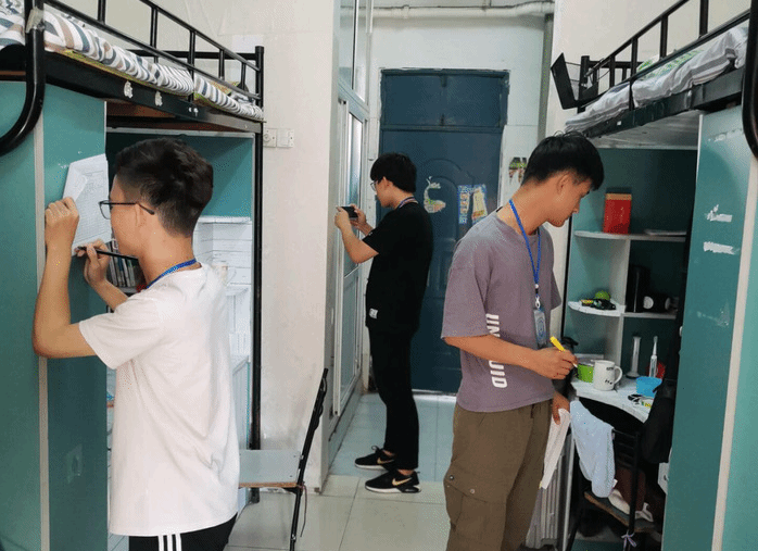 9月28日晚上,9001诚信金沙团委学生会对新生寝室进行卫生检查。查寝过程中,工作人员秉承严谨公正的态度,从接线用电安全、桌面地面清洁等寝室安全卫生角度,对每个寝室进行全面检查并提出存在的问题,以消除安全隐患,提高同学们的安全责任意识。